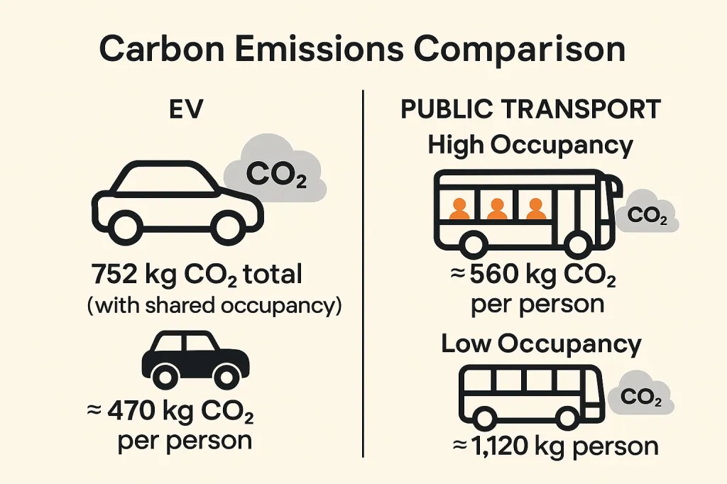 CO₂ Savings: EVs can reduce emissions by 2–4 tonnes CO₂ per year, depending on mileage and energy source.